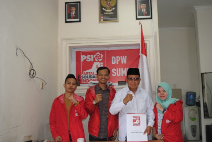 Ditemani oleh media dan Tim Pemenangannya, Mhd Syafi’i beserta rombongan diterima oleh Sekretaris DPW PSI Sumut Delia Ulfa dan Ketua DPD PSI Kota Medan M Fahri Riza.