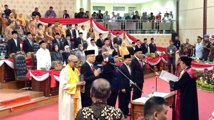 MEDAN – Setelah melewati waktu yang panjang, akhirnya para pimpinan Dewan Perwakilan Rakyat Daerah (DPRD) Kota Medan periode 2019 – 2024 di sumpah janji (dilantik) oleh Ketua Pengadilan Negeri Medan, Dr Djaniko M.H Girsang SH MH ketua Pengadilan Negeri Medan Kelas I A atas nama Gubernur Sumatera Utara, Edy Rahmayadi, di gedung paripurna DPRD Kota Medan, Jumat (8/11).