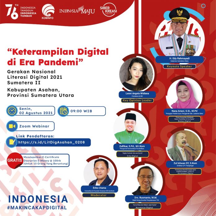 LITERASI DIGITAL KABUPATEN ASAHAN – PROVINSI SUMATERA UTARA Senin, 02 Agustus 2021, Jam 09.00 WIB