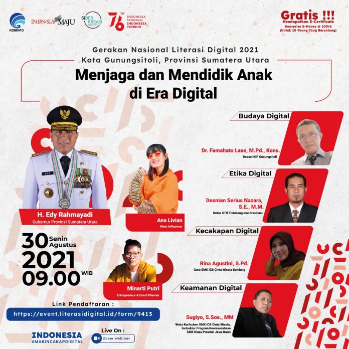 Dalam Literasi Digital yang digelar Senin, (30/08/2021), sebagai Keynote Speaker adalah Gubernur Provinsi Sumatera Utara yaitu, H. Edy Rahmayadi., dan Presiden RI Jokowi memberikan sambutan pula dalam mendukung Literasi Digital Kominfo 2021.