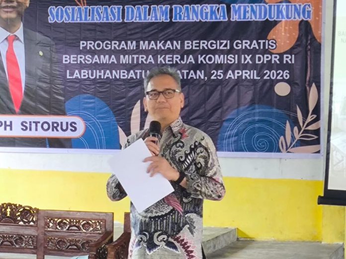Hal tersebut disampaikan dalam kegiatan Sosialisasi Program Makan Bergizi Gratis bersama mitra kerja yang dilaksanakan pada Sabtu (25/4/2026) di Aula HKBP Aek Batu, Labuhanbatu Selatan, Sumatra Utara.